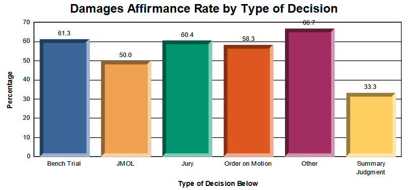 - Historical affirmance and reversal rates, broken down by legal issue, judge, technology, and type of decision below